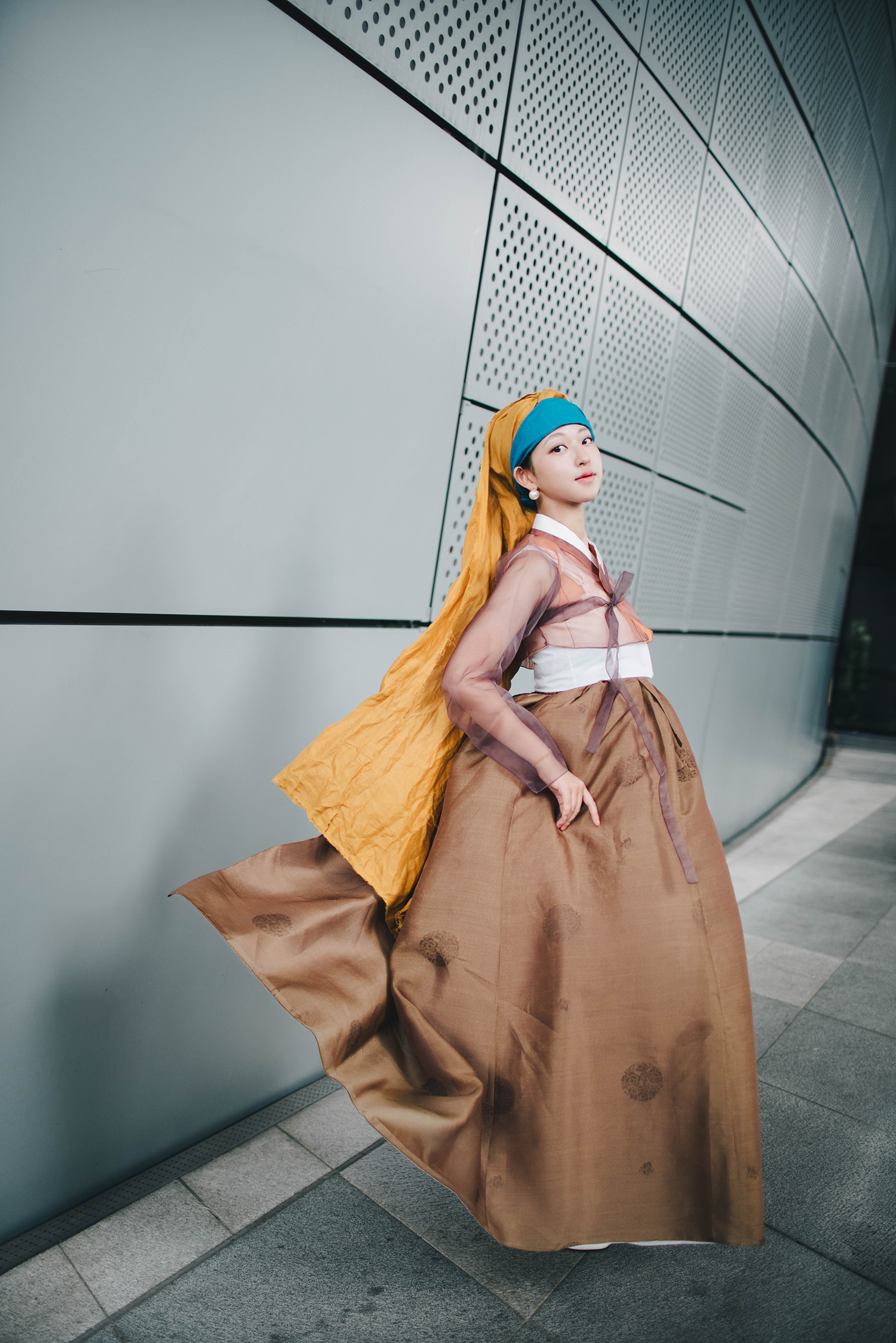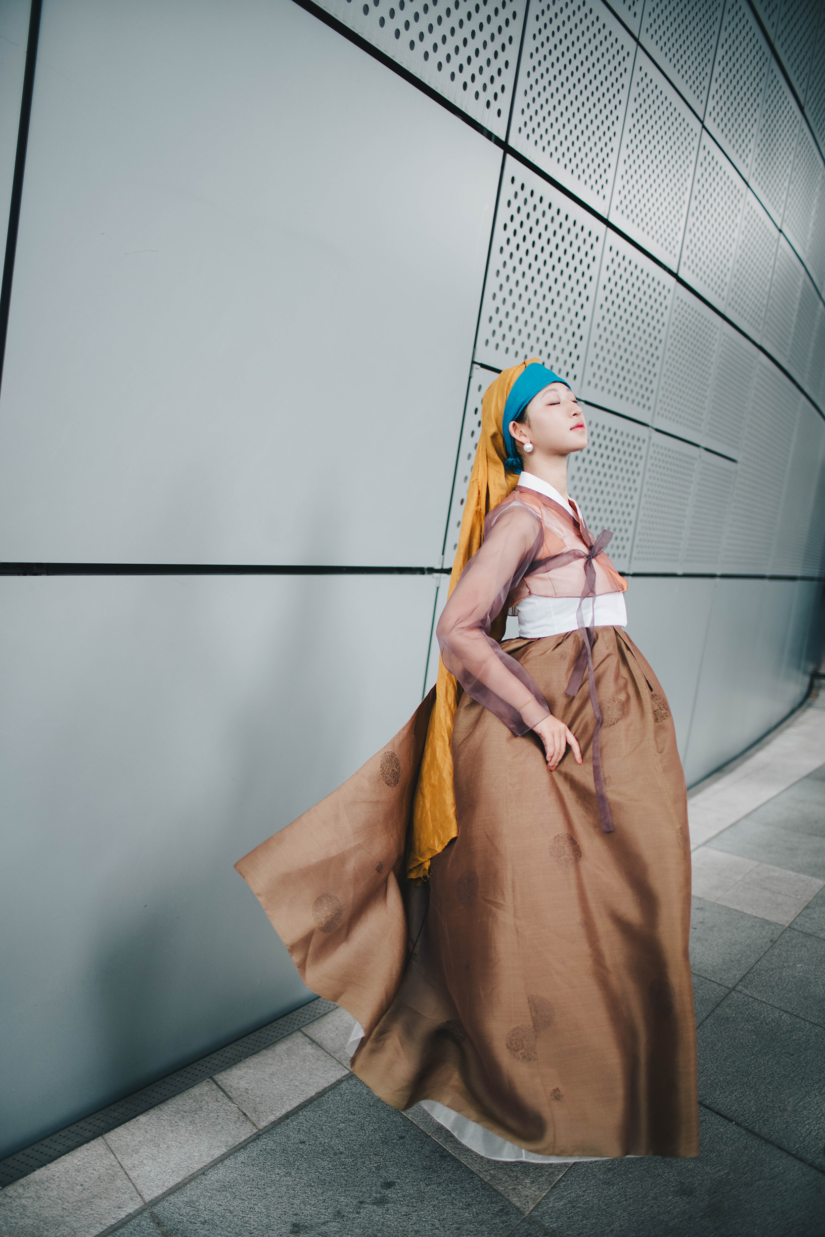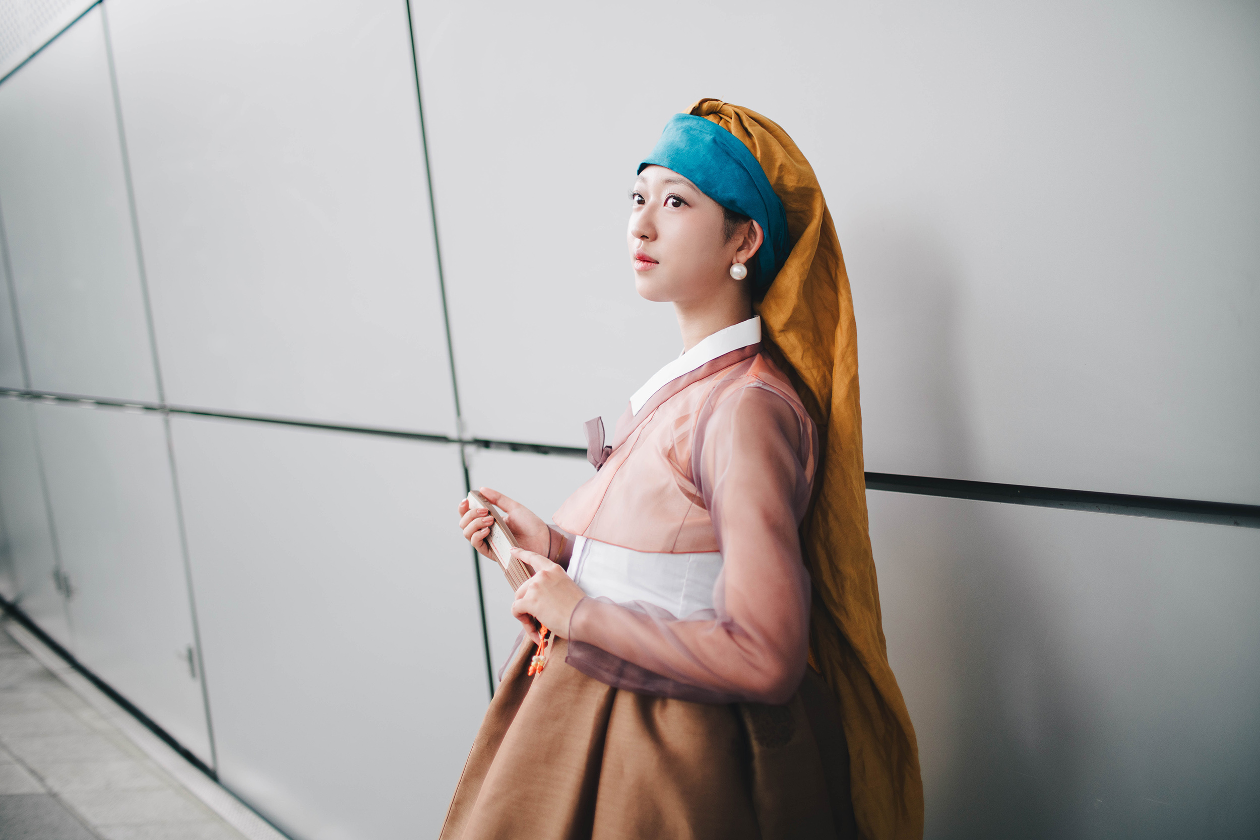 진주 귀걸이를 한 소녀를 모티브로 한복으로 스타일링 하였습니다.